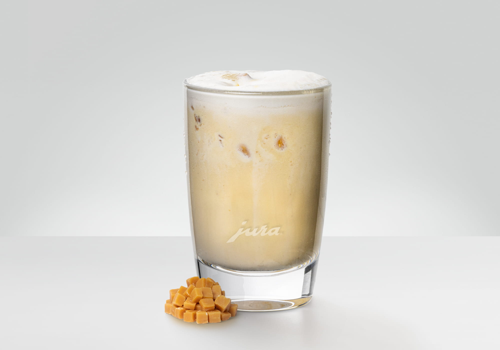 Place the glass under the fine foam frother and prepare a Cold Sweet Latte macchiato.